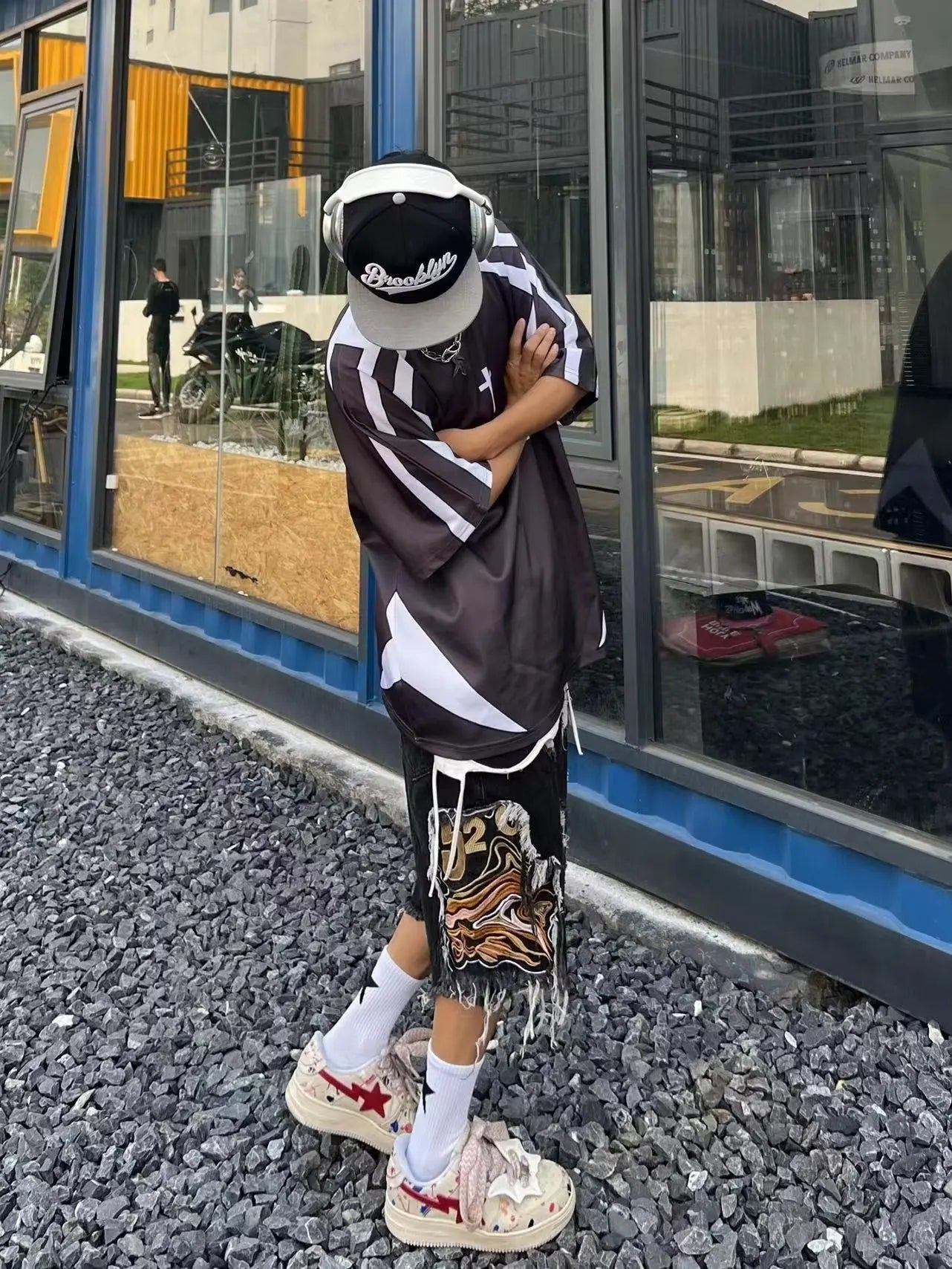 Breng je streetwear-game naar een hoger niveau met deze opvallende Geborduurde Kwastje High Street Denim Heren Shorts. Met een gedurfde combinatie van gescheurde details, retro accenten en opvallende borduursels is dit dé must-have voor liefhebbers van Europese en Amerikaanse mode. Gemaakt van hoogwaardig denim en ontworpen volgens de laatste hiphoptrends, zorgen deze shorts voor een stoere look met een unieke twist. Perfect voor zomerse dagen, festivals of gewoon om jouw outfit die edgy touch te geven.